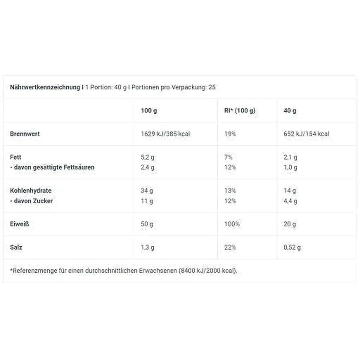 - Hoher Proteingehalt mit 50 g Eiweiß pro 100 g