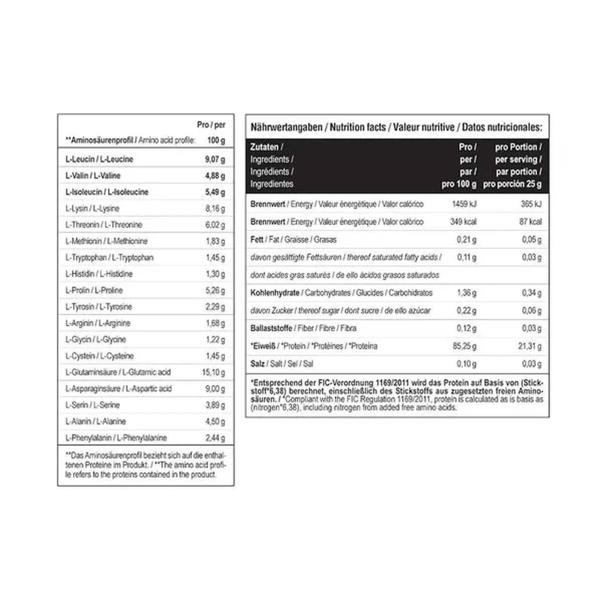 | Eiweiß / Protein | 85,52 g | 21,38 g |