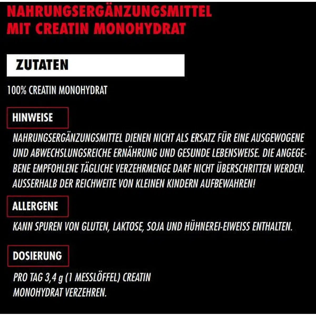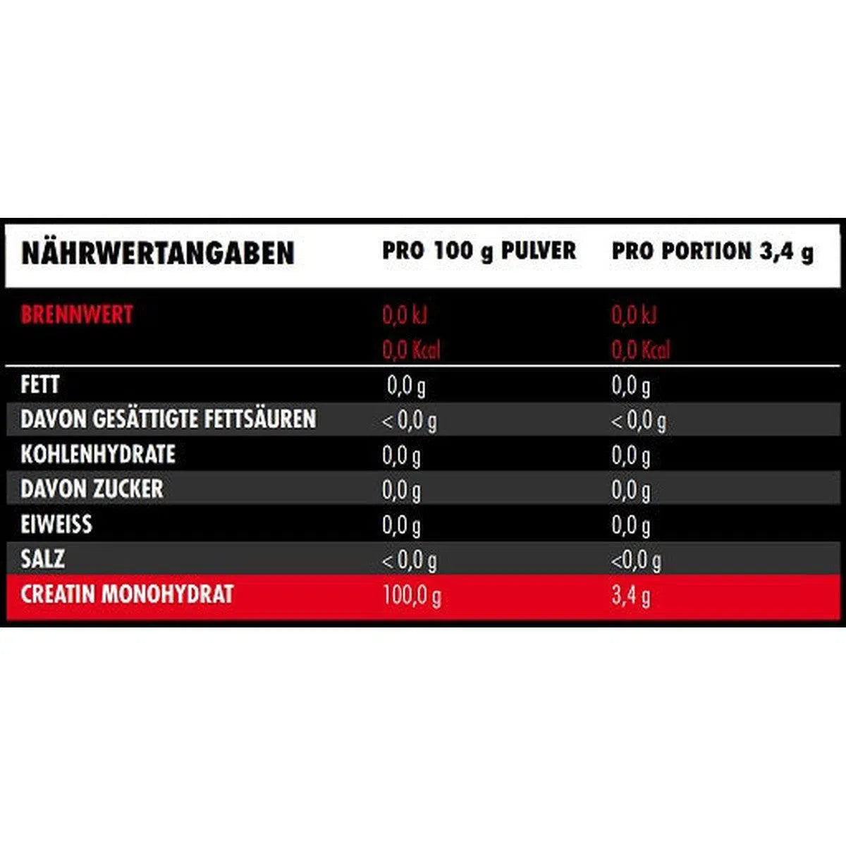 | Creatin Monohydrat | 100,0 g | 3,4 g |