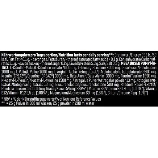 Nährwertangaben NITRO PUMP 3.0