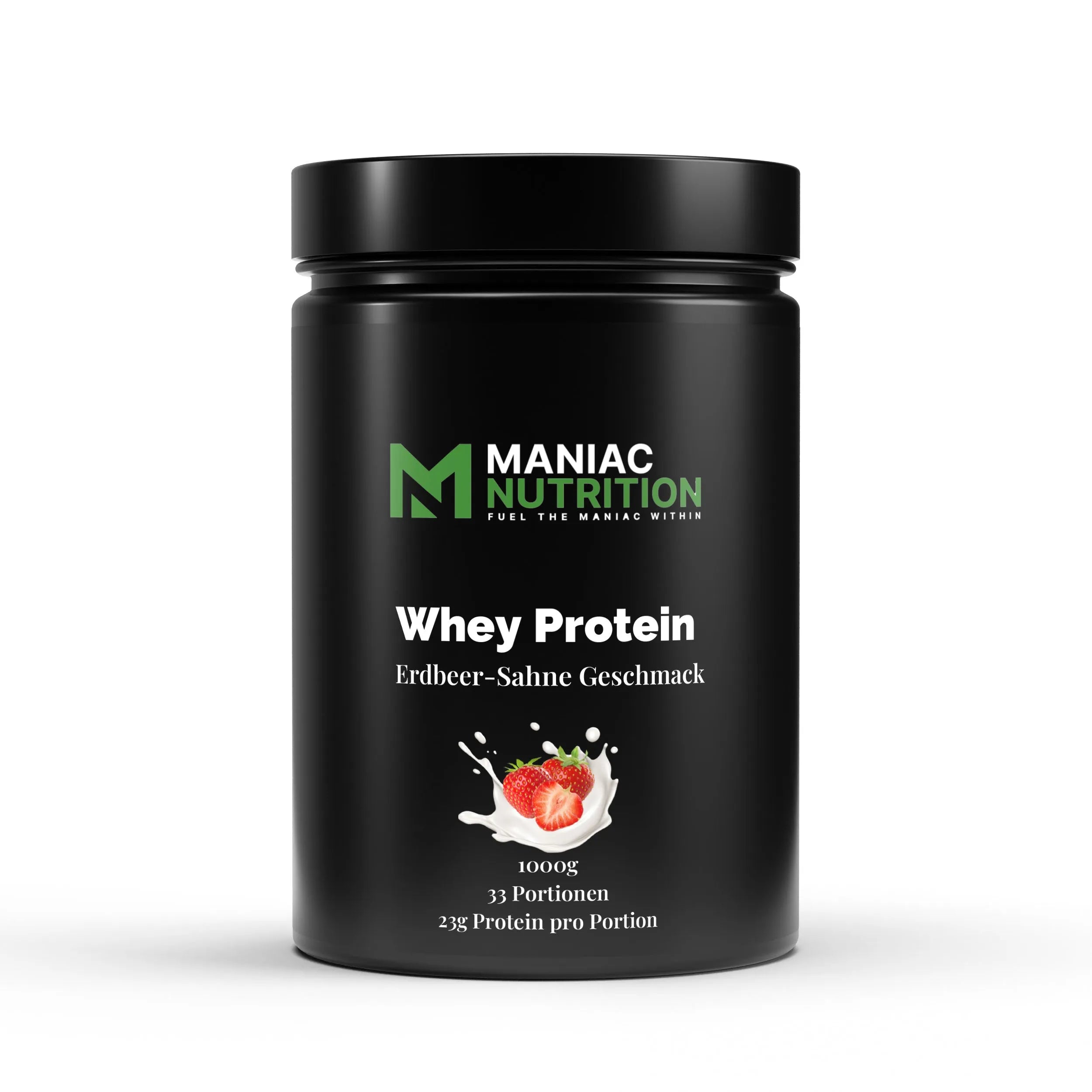 Genieße das Premium Whey Protein von Maniac Nutrition in der praktischen 1000g-Größe. Ausgewählte Zutaten und der köstliche Erdbeer-Sahne-Geschmack machen jeden Shake zu einem wahren Genussmoment – kompromisslos und mit vollem Aroma.