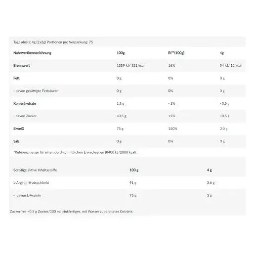 - 75 g L-Arginin / 100 g
