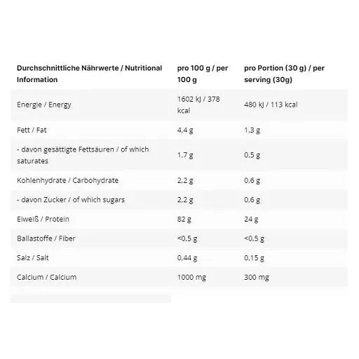 | Eiweiß / Protein | 82 g | 24 g |