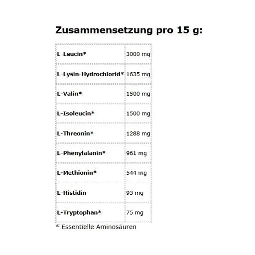 Verkehrsbezeichnung: Nahrungsergänzungsmittel in Pulverform mit essentiellen Aminosäuren