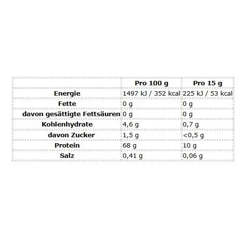 | Nährwerttabelle / Nutritional Information | pro 100 g / per 100 g | pro Portion (15 g) / per serving (15 g) |