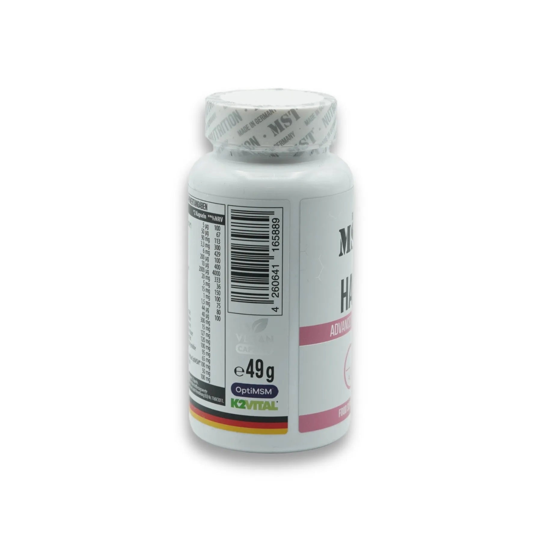 Eine Dose MST Hair Advanced Formula enthält 60 Kapseln, ausreichend für einen Monat bei empfohlener Dosierung.
