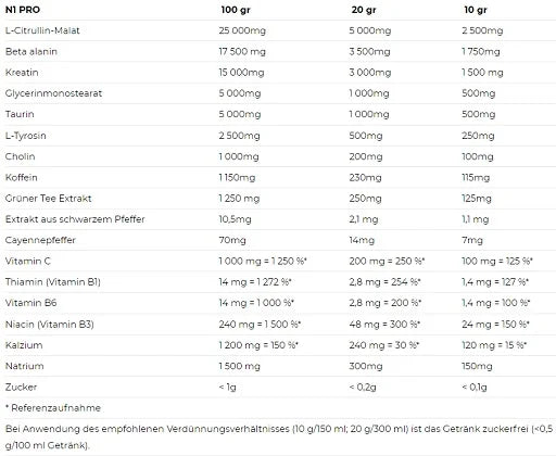 Nährwertangaben NUTREND N1 Pro Preworkout 300g