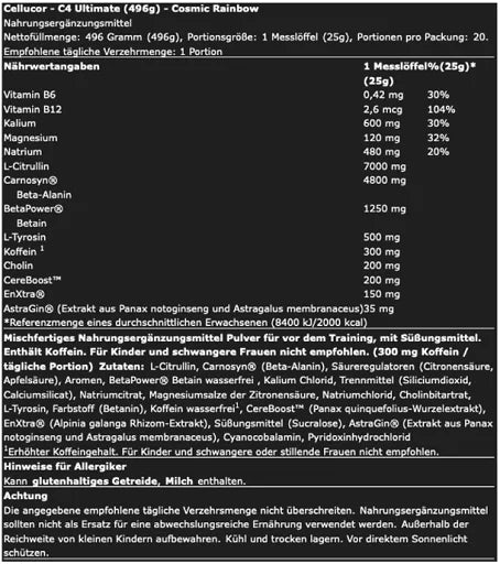 Nährwertangaben Cellucor C4 Ultimate 496g